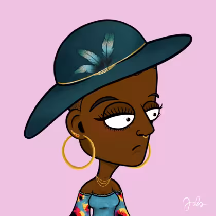 Collection Depressed Citizens Artist Juls Description ART. No team, no project, no future. Depressed Citizens is an urban & existential Art expression on Ordinals. In a parallel universe, "THEI" control us. DC unites against toxic society, encouraging critical thinking. 100% hand made collection that took Juls more than 6 months of daily work. Name Citizen#1286 Origin African descendant Gender Woman Necklace Gold layered necklace Hat Floppy feather hat Mustache Beard No beard Glasses No Glasses Earrings Upper lobe strass Hair Style Shaved head Clothes Abstract flowers blue blouse Tattoo No Tattoo Star Background Without stars