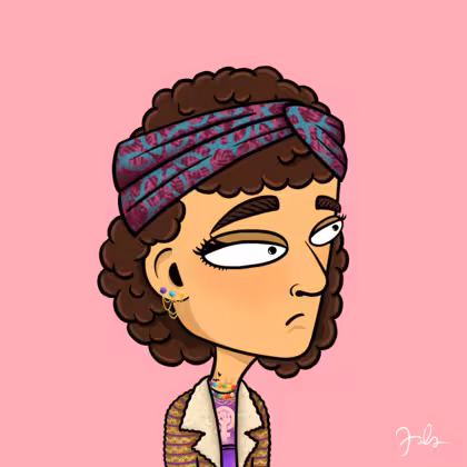 Collection Depressed Citizens Artist Juls Description ART. No team, no project, no future. Depressed Citizens is an urban & existential Art expression on Ordinals. In a parallel universe, "THEI" control us. DC unites against toxic society, encouraging critical thinking. 100% hand made collection that took Juls more than 6 months of daily work. Name Citizen#245 Origin Caucasian non hispanic Gender Woman Necklace Colorful layered necklace Hat Printed headband Mustache Beard No beard Glasses No Glasses Earrings Chandelier earring Hair Style Curly Clothes Women power long-sleeve shirt Tattoo Rose tattoo Star Background Without stars
