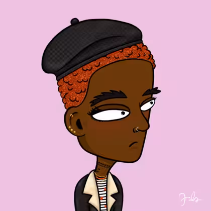 Collection Depressed Citizens Artist Juls Description ART. No team, no project, no future. Depressed Citizens is an urban & existential Art expression on Ordinals. In a parallel universe, "THEI" control us. DC unites against toxic society, encouraging critical thinking. 100% hand made collection that took Juls more than 6 months of daily work. Name Citizen#1934 Origin African descendant Gender Woman Necklace Gold layered necklace Hat Black beret Mustache Beard No beard Glasses No Glasses Earrings Rook hoop Hair Style Short tight curls Clothes Marine heart long-sleeve shirt Tattoo Rose tattoo Star Background Without stars