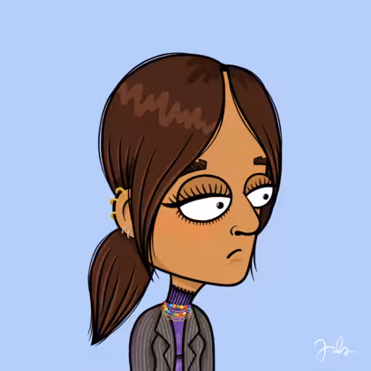 Collection Depressed Citizens Artist Juls Description ART. No team, no project, no future. Depressed Citizens is an urban & existential Art expression on Ordinals. In a parallel universe, "THEI" control us. DC unites against toxic society, encouraging critical thinking. 100% hand made collection that took Juls more than 6 months of daily work. Name Citizen#3051 Origin Hispanic Gender Woman Necklace Colorful layered necklace Hat No Hat Mustache Beard No beard Glasses No Glasses Earrings Helix ring trio Hair Style Low ponytail Clothes Purple turtleneck sweater Tattoo No Tattoo Star Background Without stars