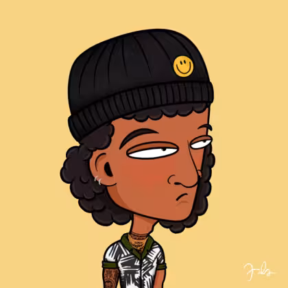 Collection Depressed Citizens Artist Juls Description ART. No team, no project, no future. Depressed Citizens is an urban & existential Art expression on Ordinals. In a parallel universe, "THEI" control us. DC unites against toxic society, encouraging critical thinking. 100% hand made collection that took Juls more than 6 months of daily work. Name Citizen#1004 Origin Asian & Pacific islander Gender Man Necklace Gold layered necklace Hat Smiley beanie Mustache Beard No beard Glasses No Glasses Earrings Upper lobe rings Hair Style Curly Clothes Boardriders shirt Tattoo Maya tattoo Star Background Without stars
