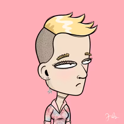 Collection Depressed Citizens Artist Juls Description ART. No team, no project, no future. Depressed Citizens is an urban & existential Art expression on Ordinals. In a parallel universe, "THEI" control us. DC unites against toxic society, encouraging critical thinking. 100% hand made collection that took Juls more than 6 months of daily work. Name Citizen#2023 Origin Caucasian non hispanic Gender Woman Necklace Choker Hat No Hat Mustache Beard No beard Glasses No Glasses Earrings Upper lobe rings Hair Style Short plane head Clothes Artsy pink shirt Tattoo No Tattoo Star Background Without stars