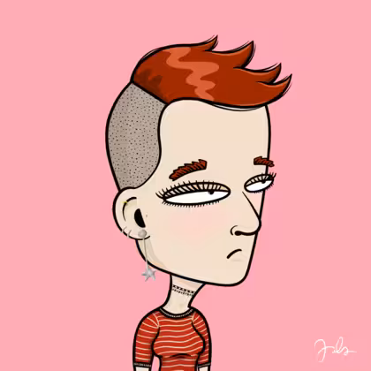 Collection Depressed Citizens Artist Juls Description ART. No team, no project, no future. Depressed Citizens is an urban & existential Art expression on Ordinals. In a parallel universe, "THEI" control us. DC unites against toxic society, encouraging critical thinking. 100% hand made collection that took Juls more than 6 months of daily work. Name Citizen#1103 Origin Caucasian non hispanic Gender Woman Necklace Choker Hat No Hat Mustache Beard No beard Glasses No Glasses Earrings Upper lobe rings Hair Style Short plane head Clothes Red stripe elbow-sleeve shirt Tattoo No Tattoo Star Background Without stars