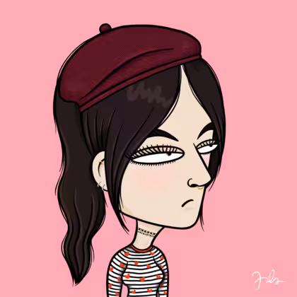 Collection Depressed Citizens Artist Juls Description ART. No team, no project, no future. Depressed Citizens is an urban & existential Art expression on Ordinals. In a parallel universe, "THEI" control us. DC unites against toxic society, encouraging critical thinking. 100% hand made collection that took Juls more than 6 months of daily work. Name Citizen#988 Origin Caucasian non hispanic Gender Woman Necklace Choker Hat Burgundy beret Mustache Beard No beard Glasses No Glasses Earrings Upper lobe rings Hair Style High ponytail Clothes Marine heart long-sleeve shirt Tattoo No Tattoo Star Background Without stars