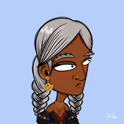 Collection Depressed Citizens Artist Juls Description ART. No team, no project, no future. Depressed Citizens is an urban & existential Art expression on Ordinals. In a parallel universe, "THEI" control us. DC unites against toxic society, encouraging critical thinking. 100% hand made collection that took Juls more than 6 months of daily work. Name Citizen#2655 Origin Hispanic Gender Woman Necklace Gold layered necklace Hat No Hat Mustache Beard No beard Glasses No Glasses Earrings Pre-Columbian Earrings Hair Style Double braids Clothes Traditional black flowery dress Tattoo No Tattoo Star Background Without stars