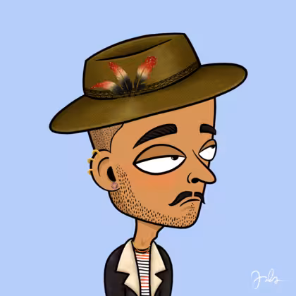 Collection Depressed Citizens Artist Juls Description ART. No team, no project, no future. Depressed Citizens is an urban & existential Art expression on Ordinals. In a parallel universe, "THEI" control us. DC unites against toxic society, encouraging critical thinking. 100% hand made collection that took Juls more than 6 months of daily work. Name Citizen#980 Origin Hispanic Gender Man Necklace Gold layered necklace Hat Fedora hat Mustache Beard Handlebar & shaved beard Glasses No Glasses Earrings Helix ring trio Hair Style Shaved head Clothes Marine stripe long-sleeve Tattoo No Tattoo Star Background Without stars